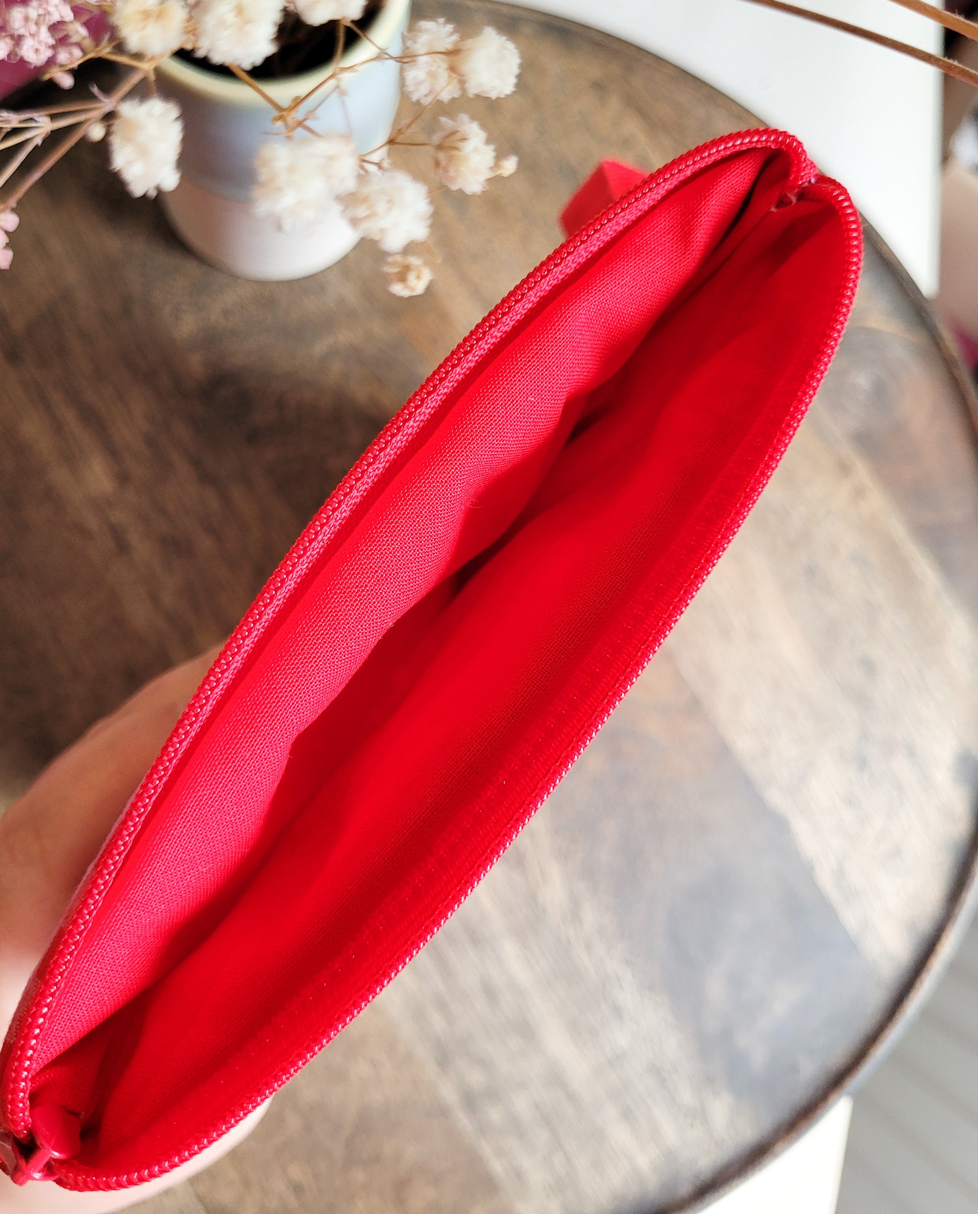 Der Reißverschluss ist in einem passenden rot und oben eingenäht.