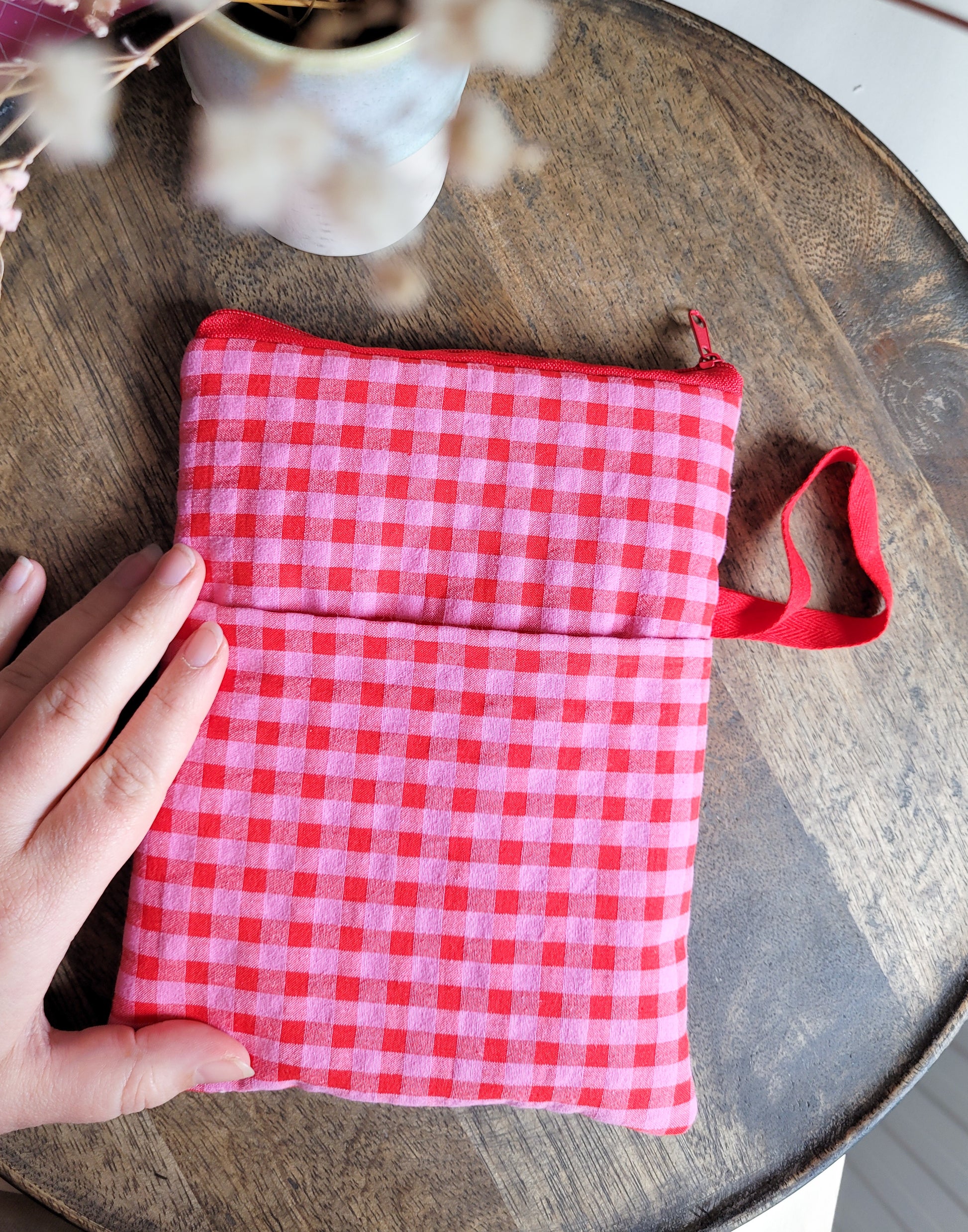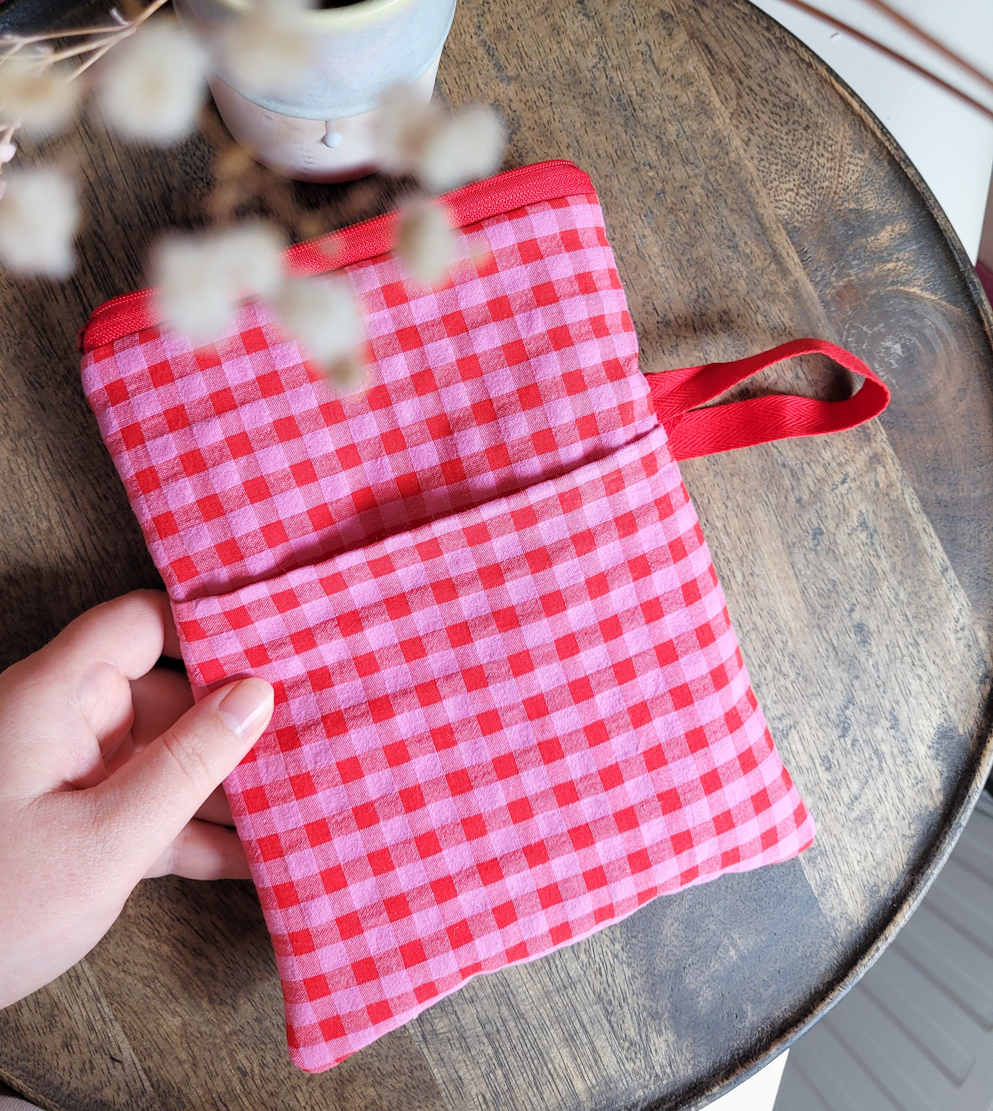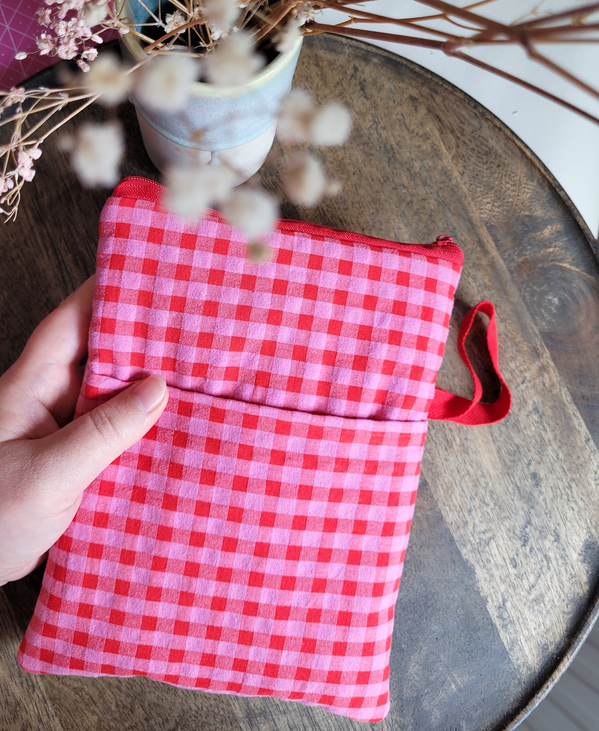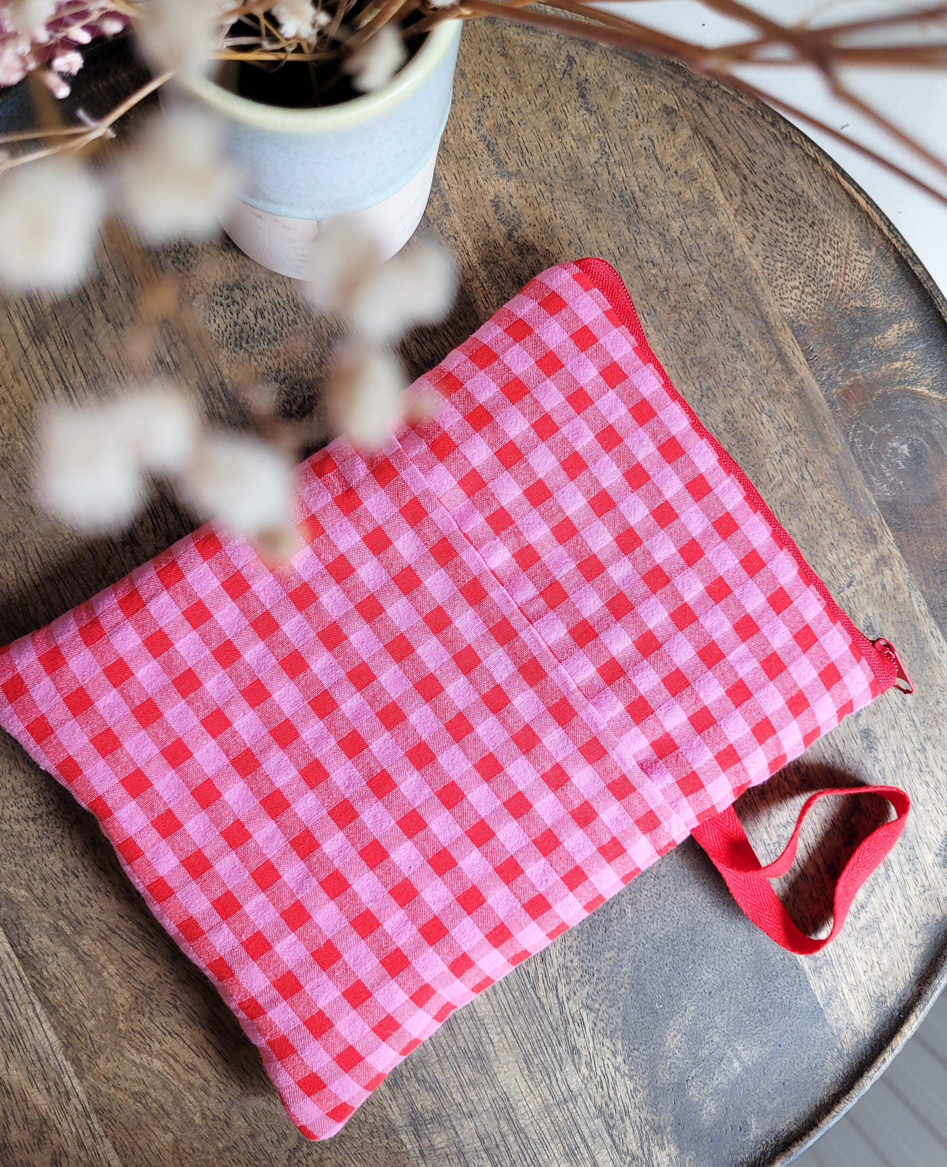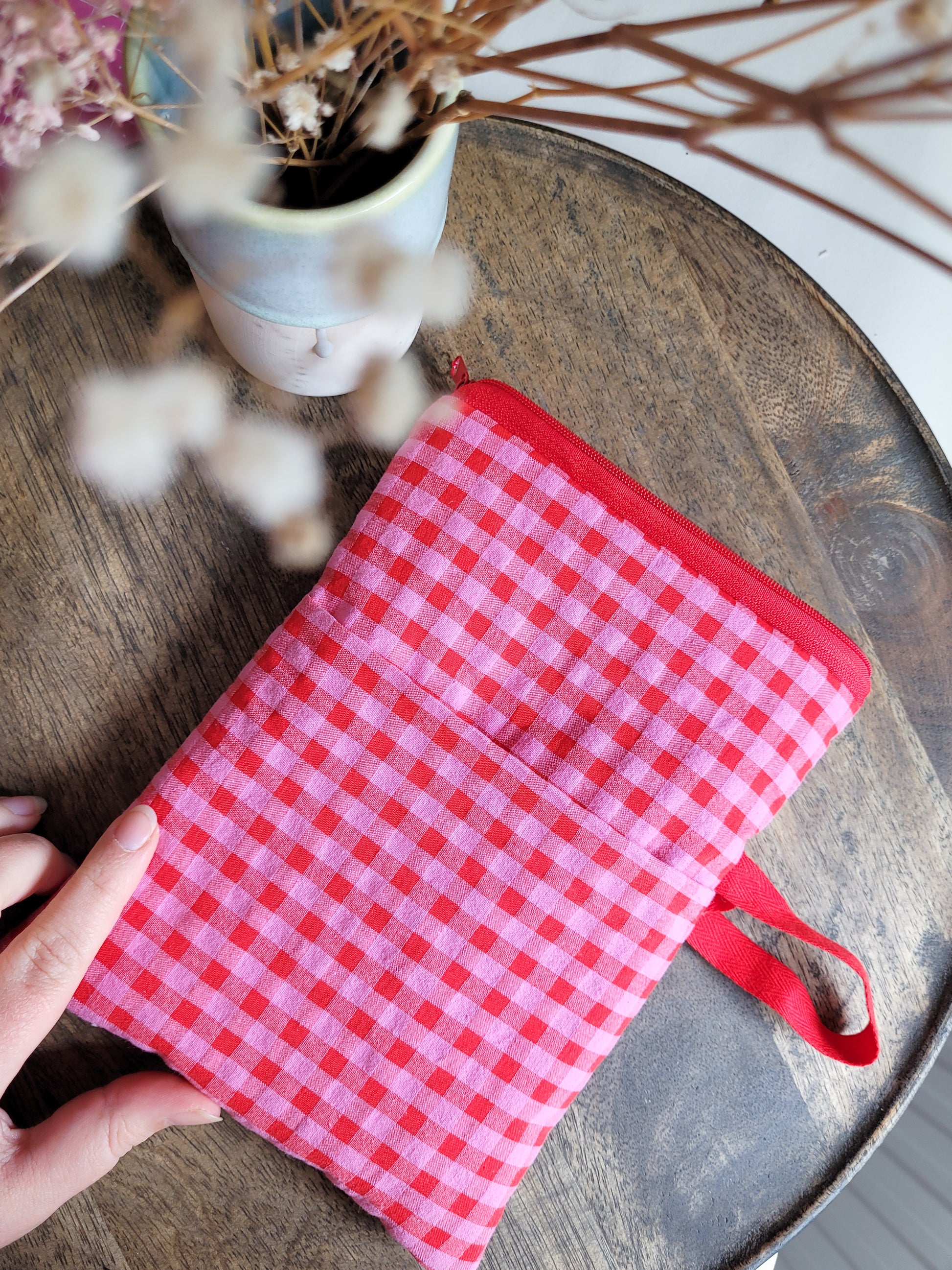 Um Deinen E-Book-Reader perfekt zu schützen, eignet sich diese Tasche aus einem rot/pink karierten Seersucker Stoff. Diese E-Reader Tasche kann oben mit einem rotem Reißverschluss sicher verschlossen werden und hat zusätzlich vorne ein Fach. Deinen E-Book-Reader einfach rein schieben und verschließen.