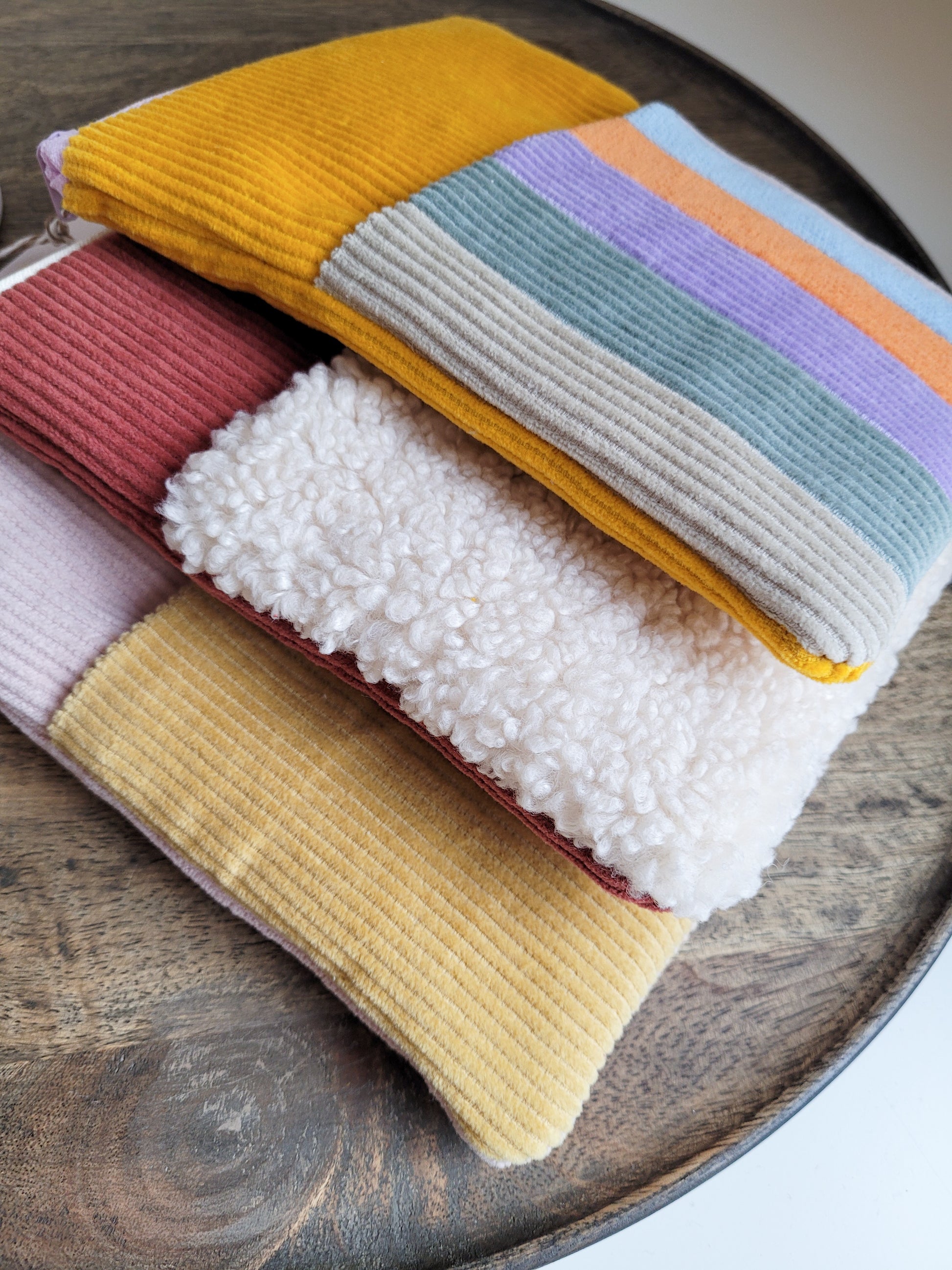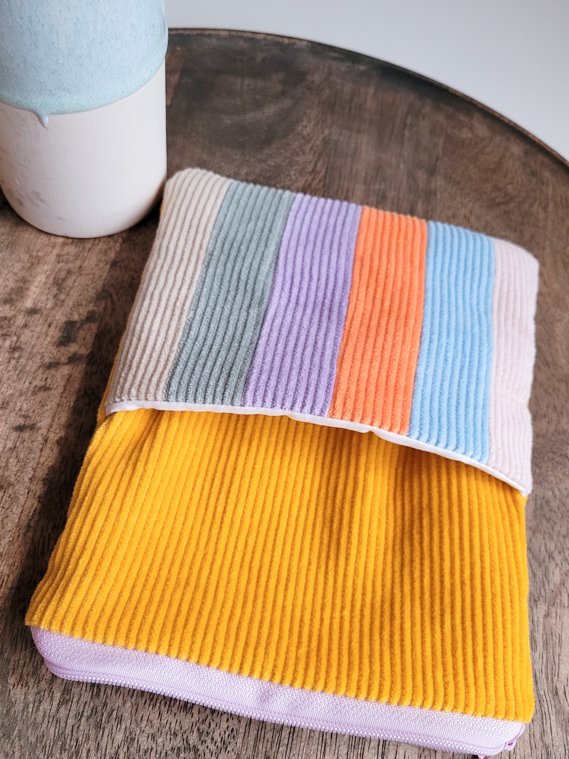 E-Reader Tasche aus Cord in Gelb & bunt, E-Book Hülle