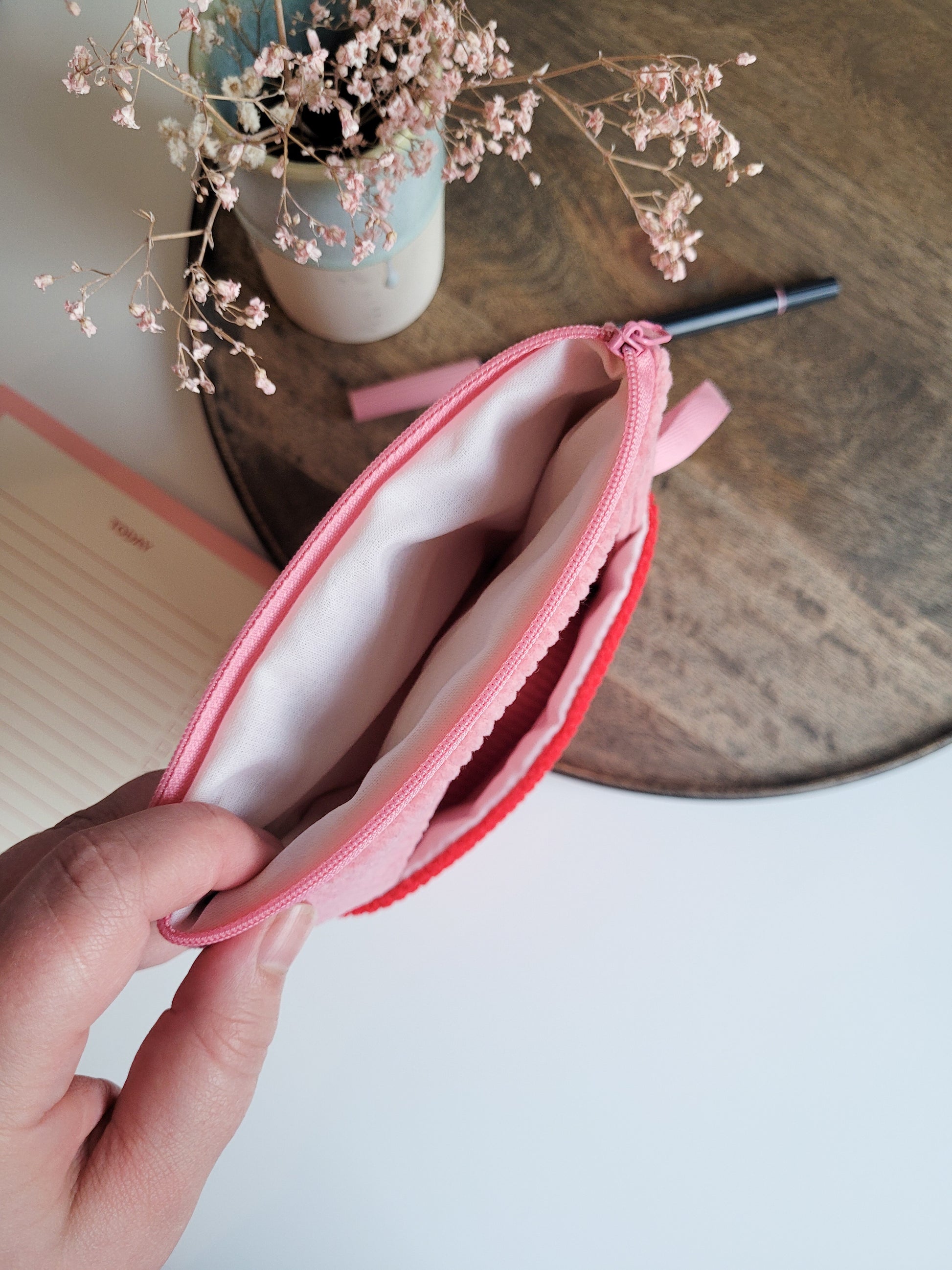 Der Reißverschluss ist in einem passenden Pink und oben eingenäht.