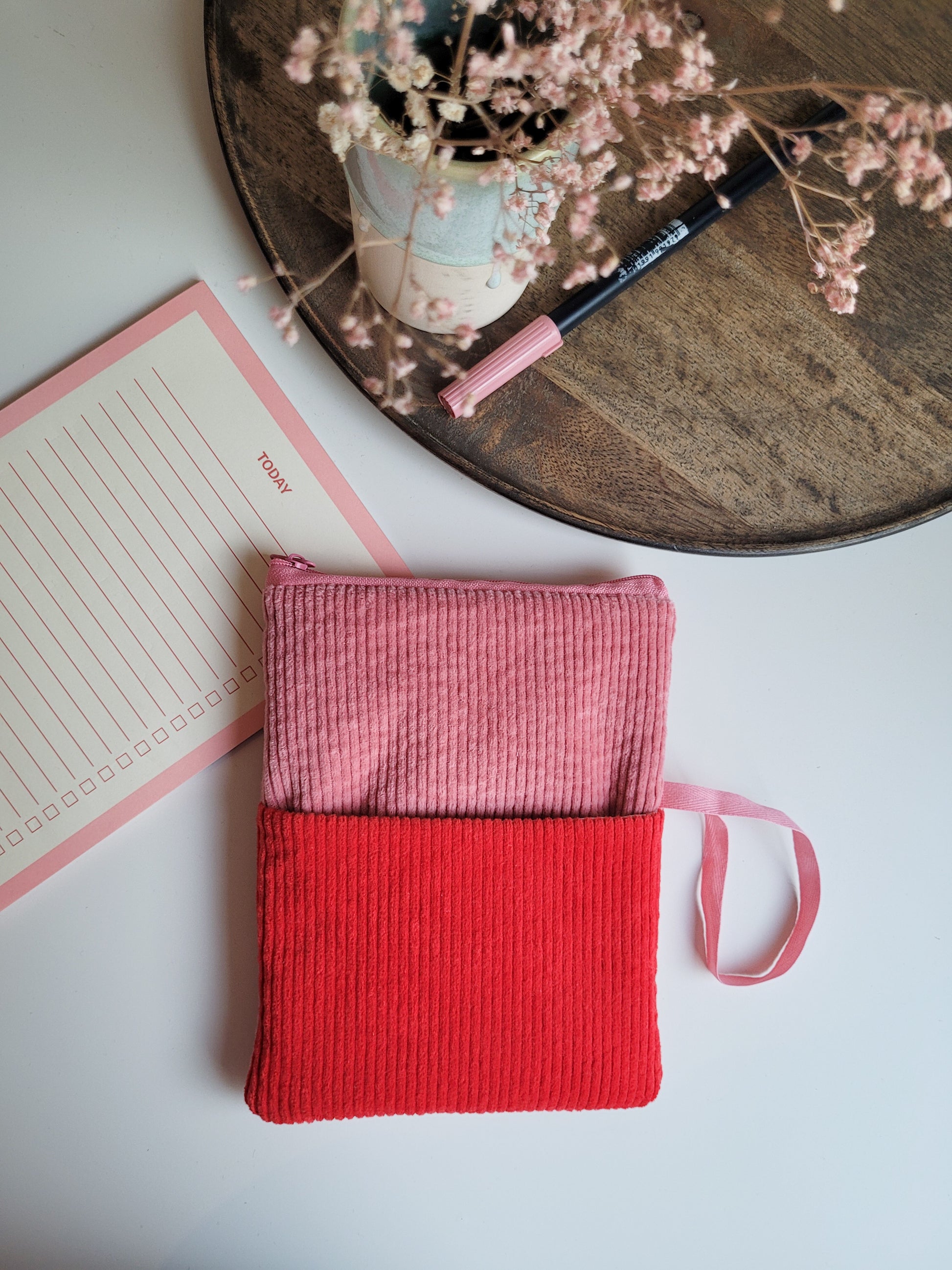 E-Reader Tasche aus Cord in Pink & Rot, E-Book Hülle
