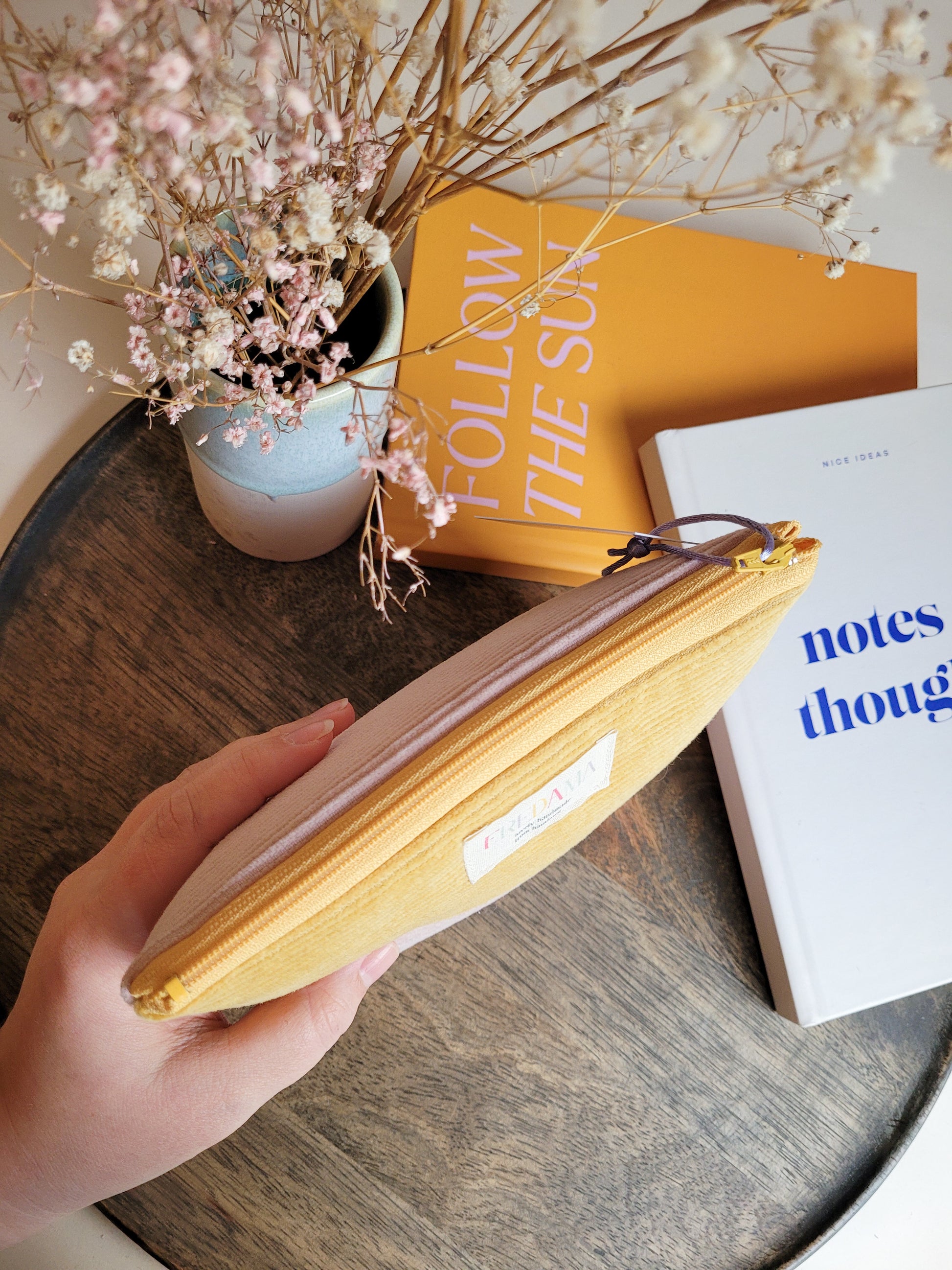Entdecken Sie diese wunderschönen und praktischen Kulturtaschen aus weichem Cordstoff und einem farblich passenden Reißverschluss – der perfekte Begleiter für Ihre Kosmetikartikel, Reiseutensilien oder persönlichen Schätze. Gefertigt aus hochwertigem Cordstoff, besticht dieses Täschchen durch seine strapazierfähige Beschaffenheit und die lebhafte gelbe Farbe, die Ihrem Alltag einen frischen Akzent verleiht.