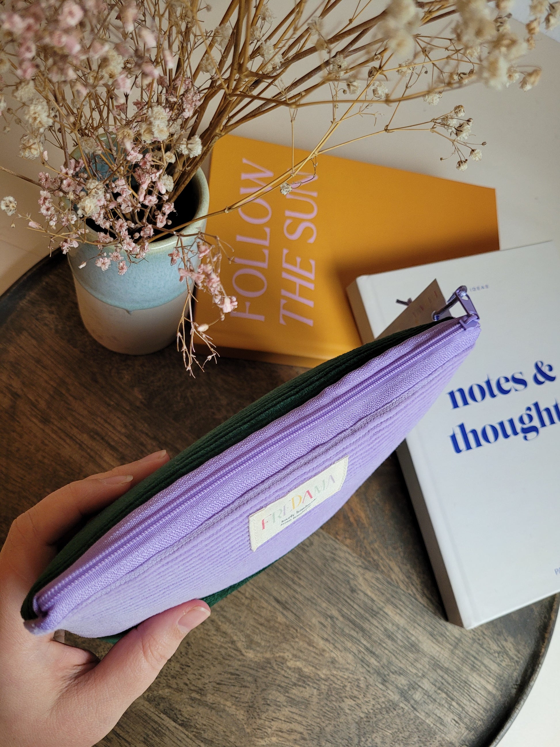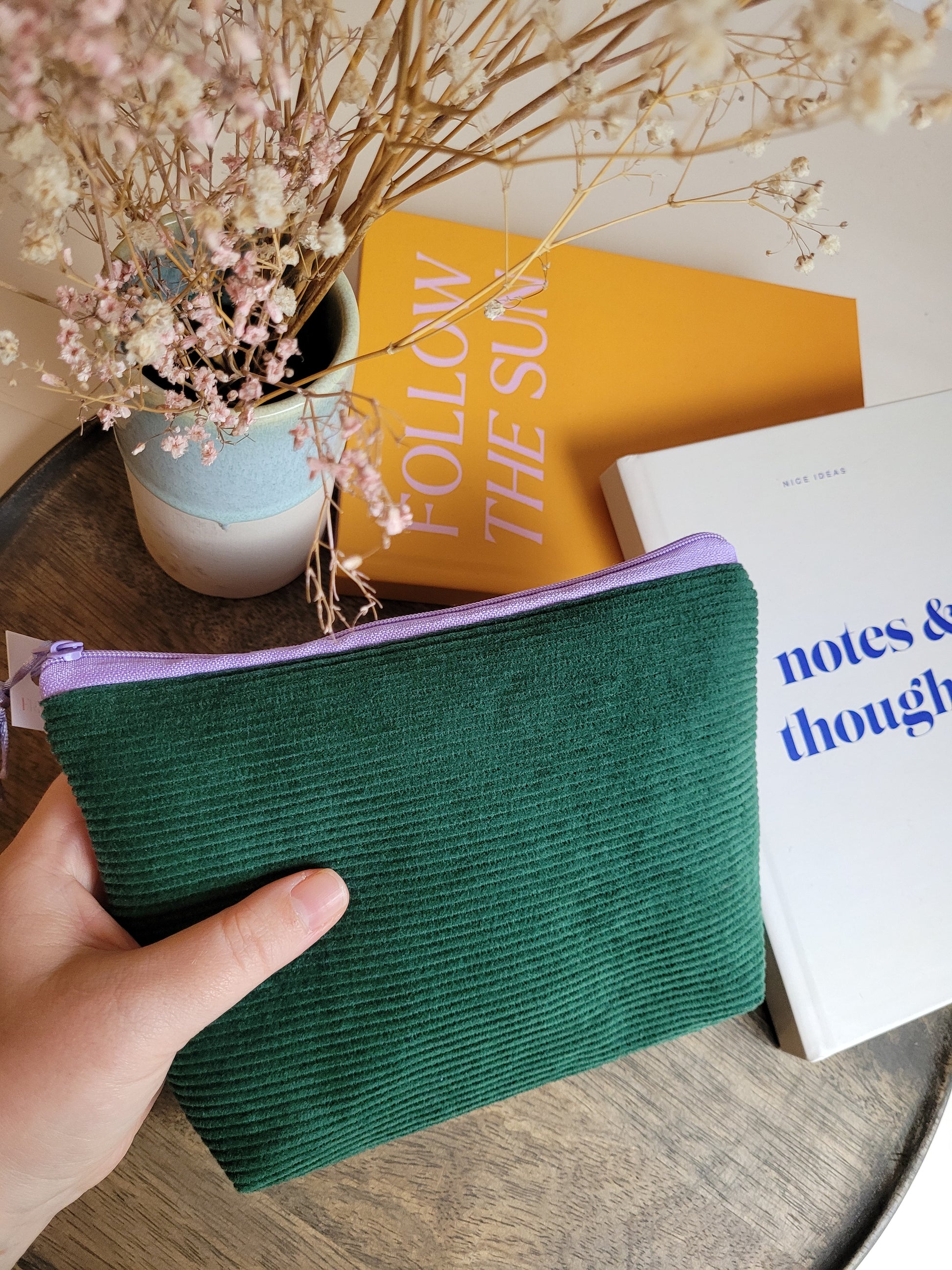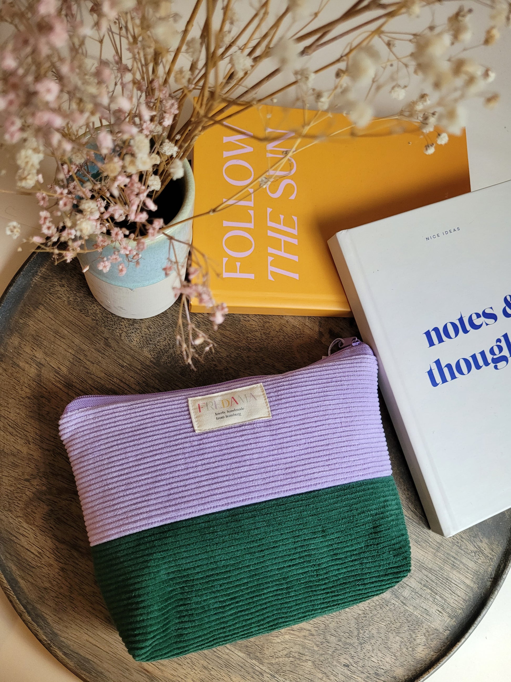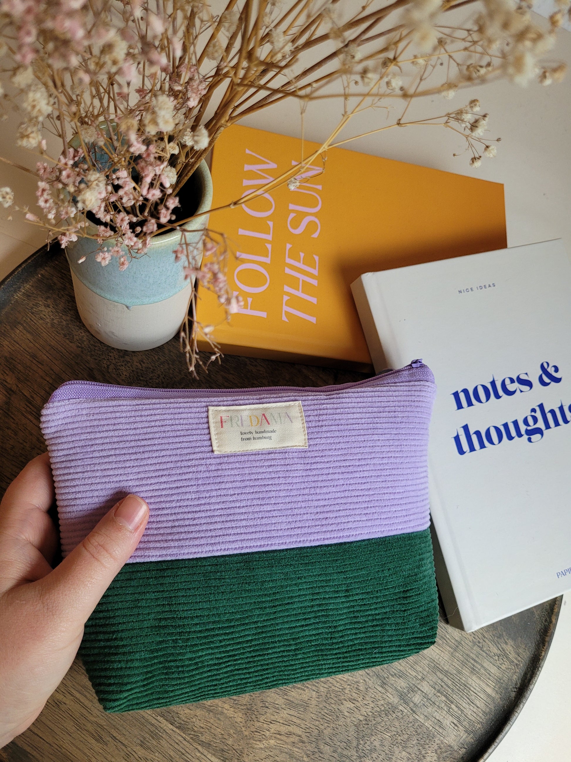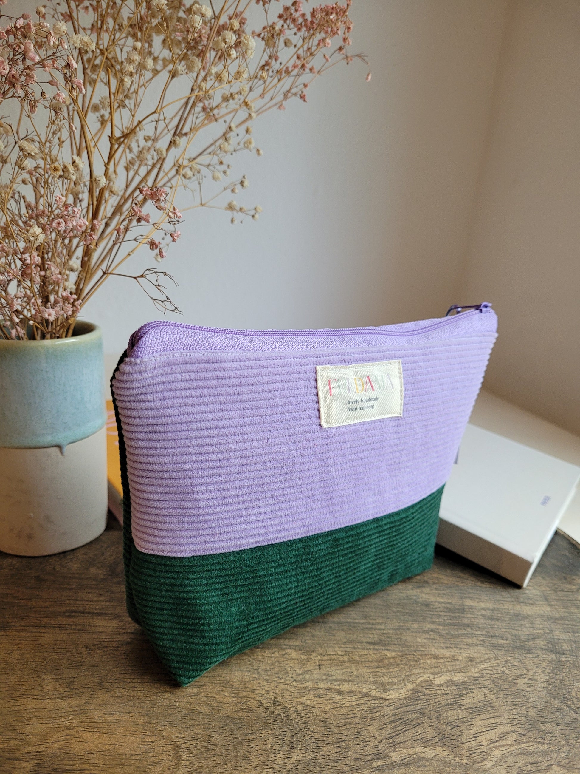 Große lila/grün Cord Kosmetiktasche mit Zipper, Maße 20x13x4 cm