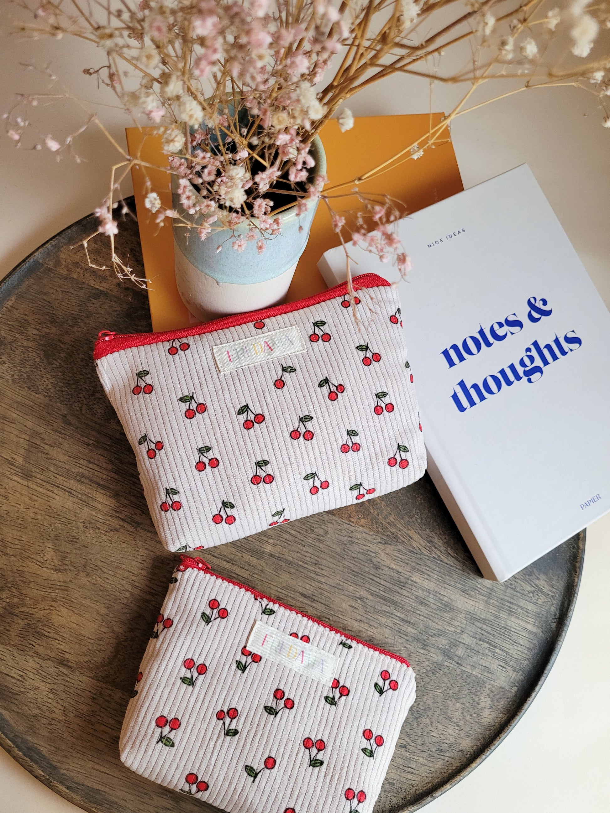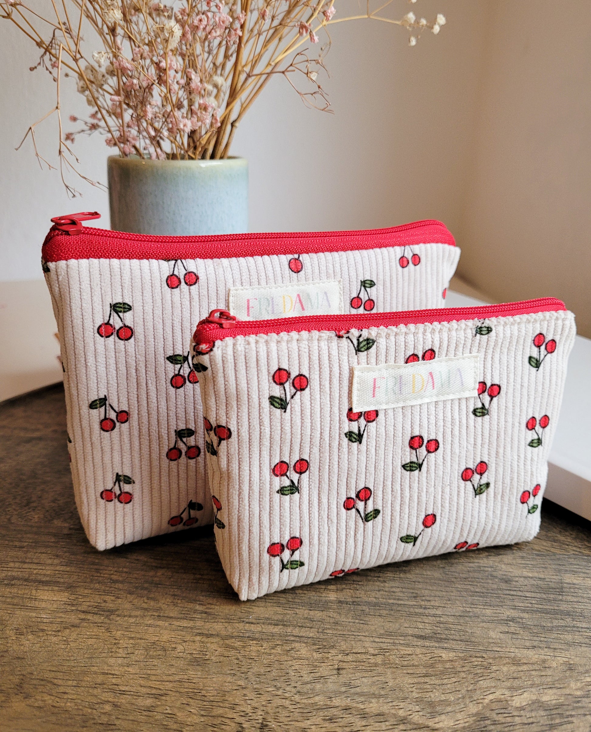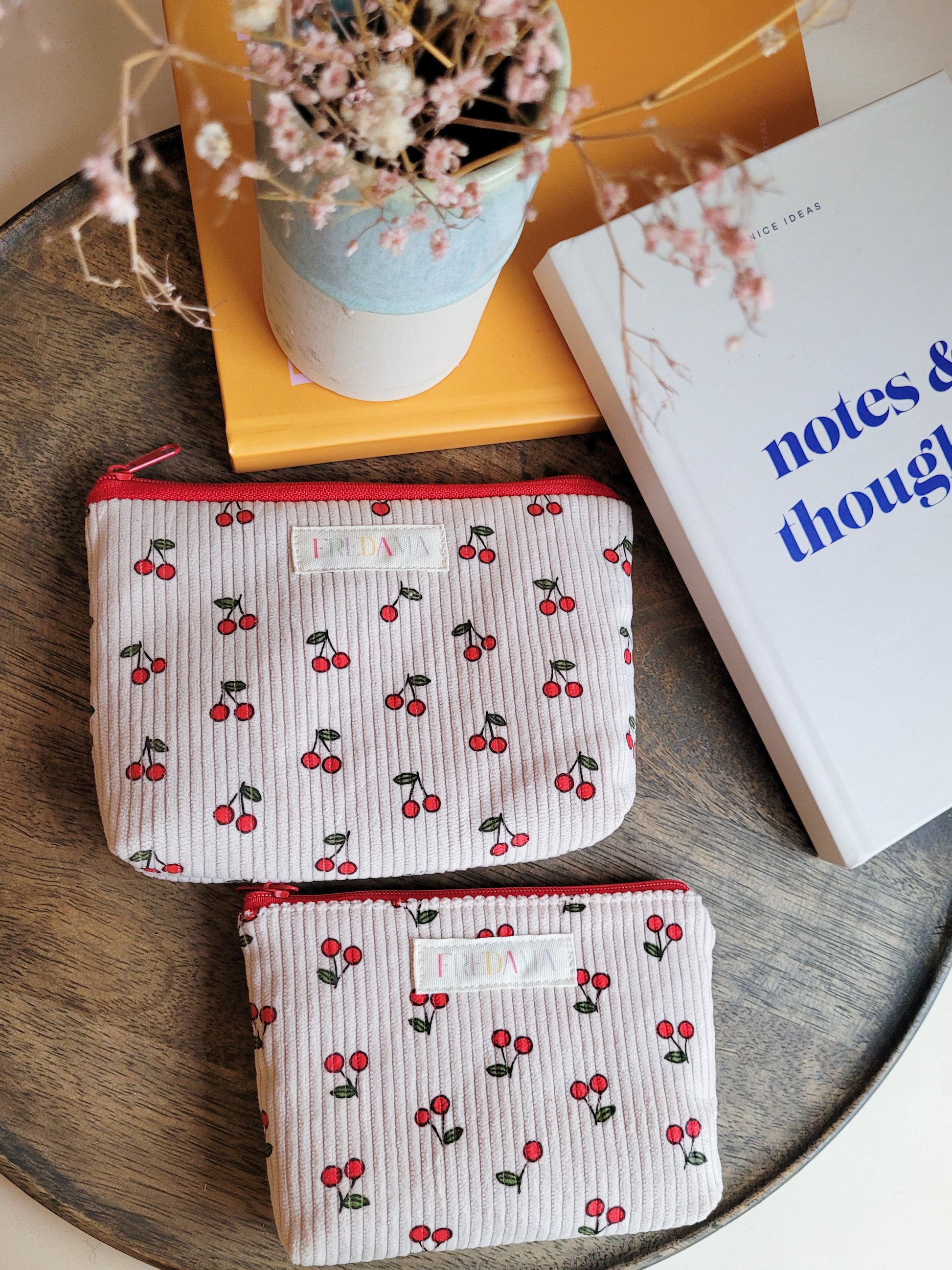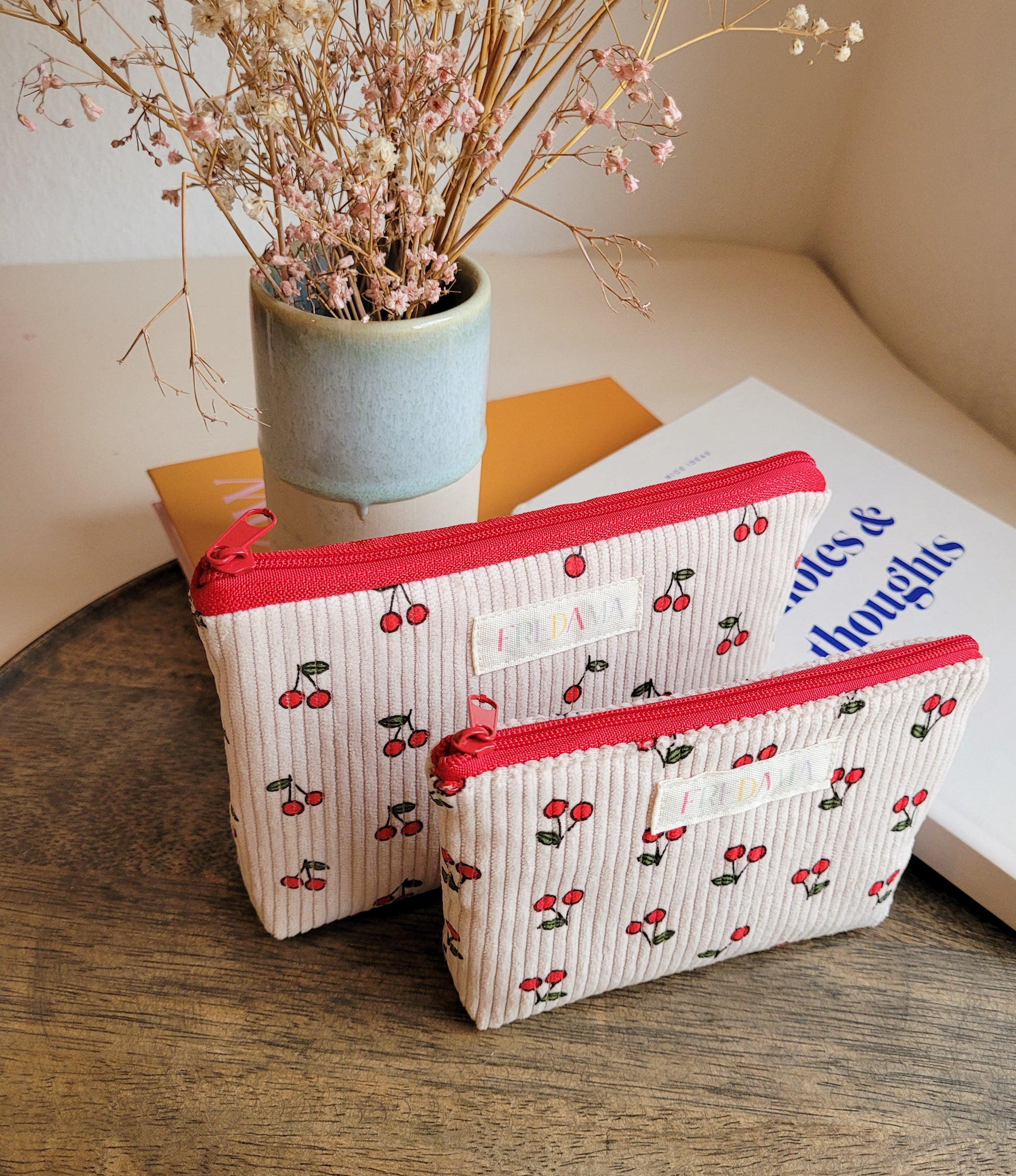 Kirschen Kosmetiktäschchen, Cord-Tasche mit Zipper, mehrere Größen