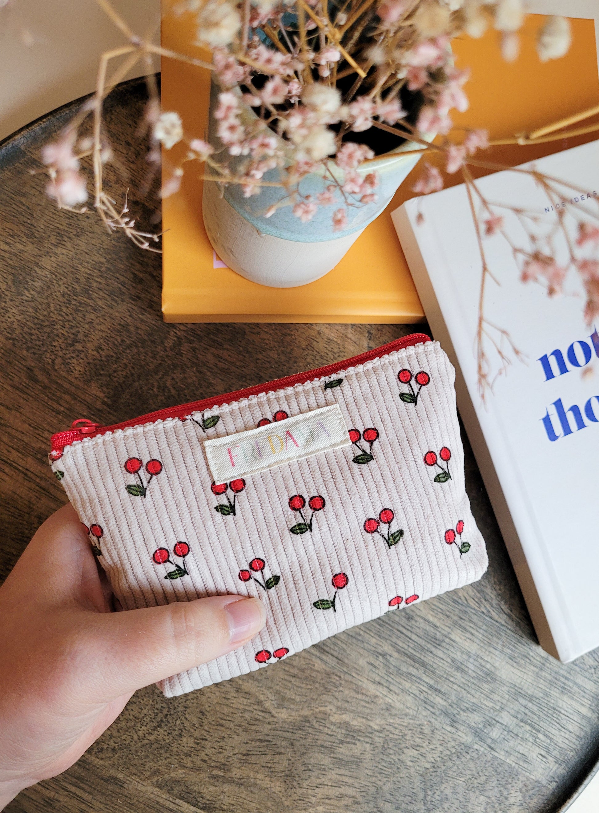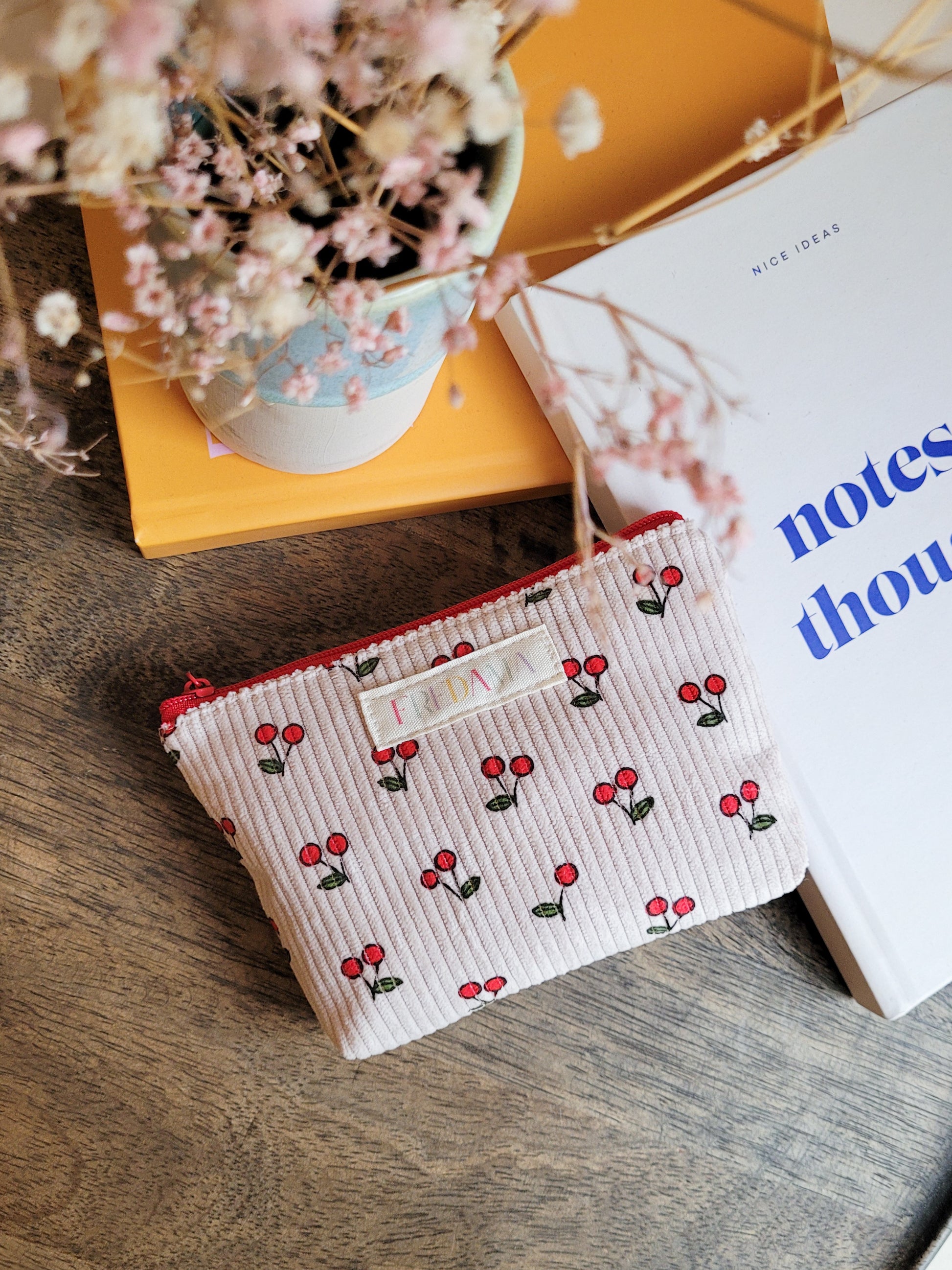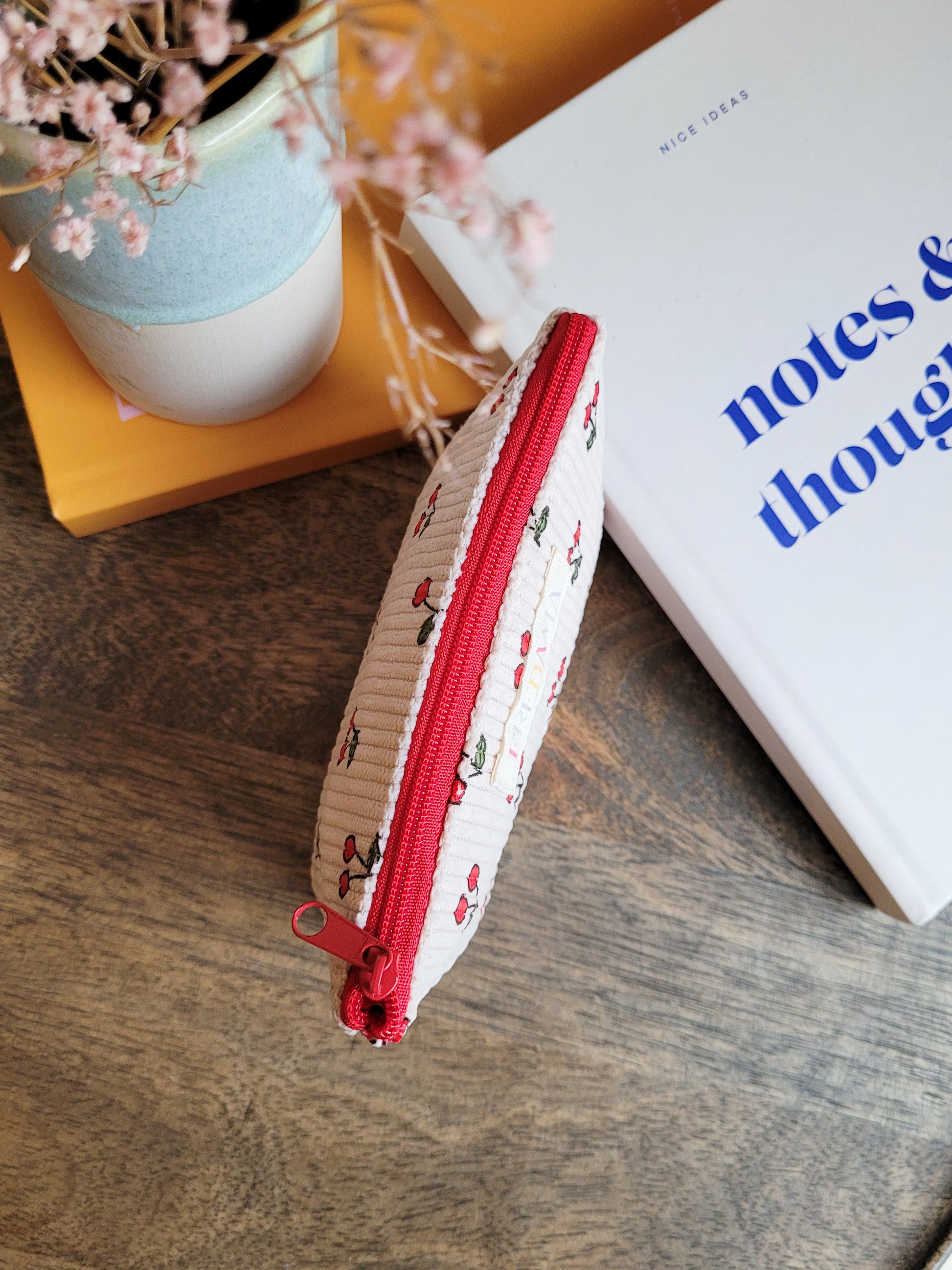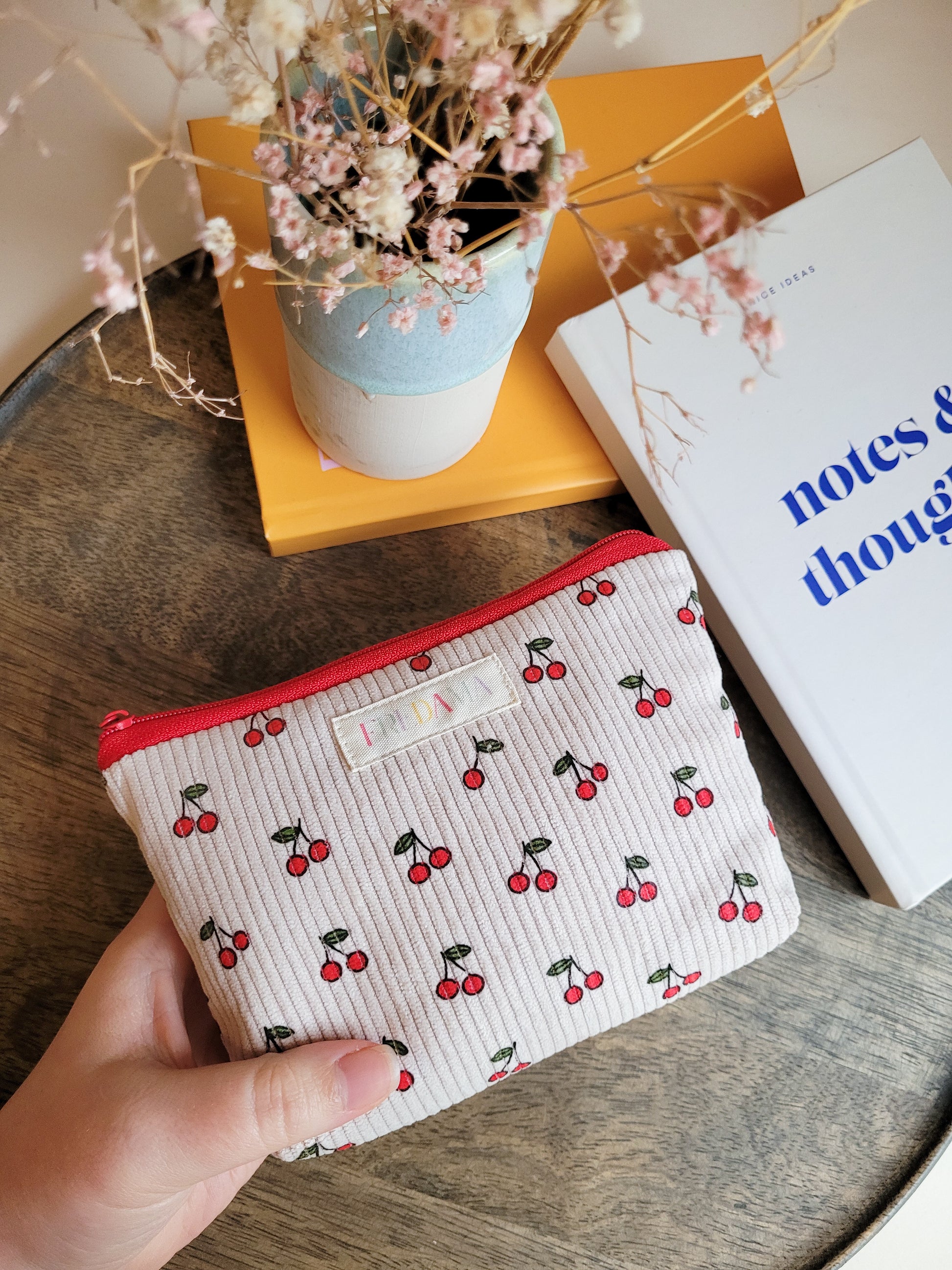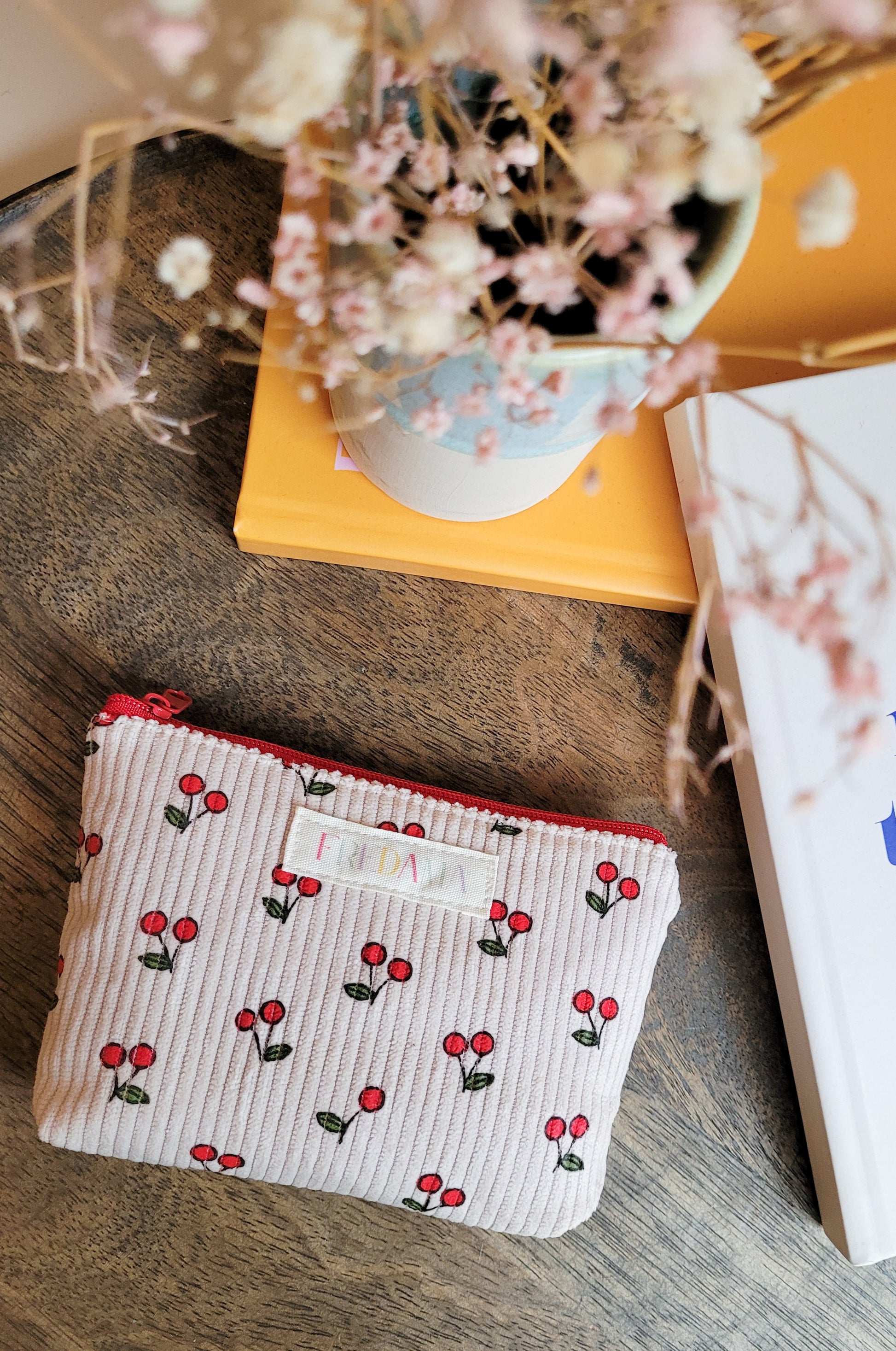 Kirschen Kosmetiktäschchen, Cord-Tasche mit Zipper, mehrere Größen