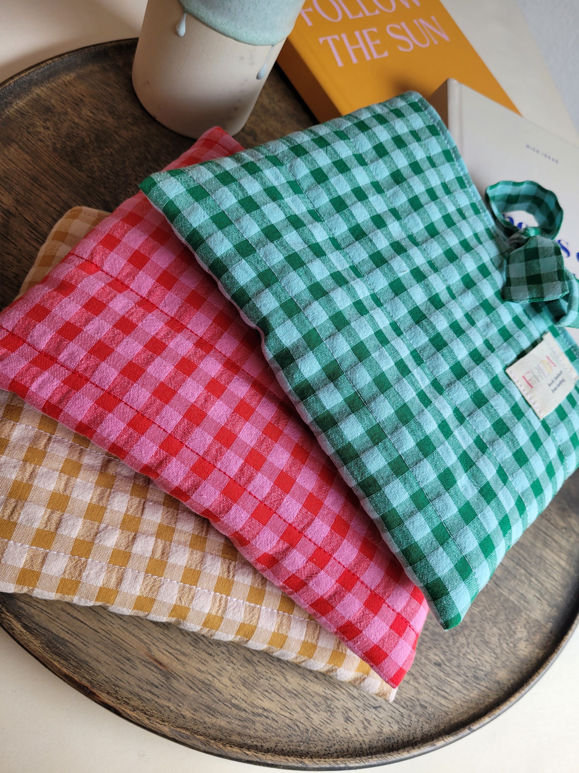 Um Deinen E-Book-Reader perfekt zu schützen, eignet sich diese gepolsterte Tasche aus weichem Seersucker-Stoff aus Baumwolle hervorragend. Diese E-Reader Tasche kann mit einer Schleife an der Seite verschlossen werden. Zum Schutz deines E-Readers ist die Tasche mit einer Watteeinlage gepolstert.