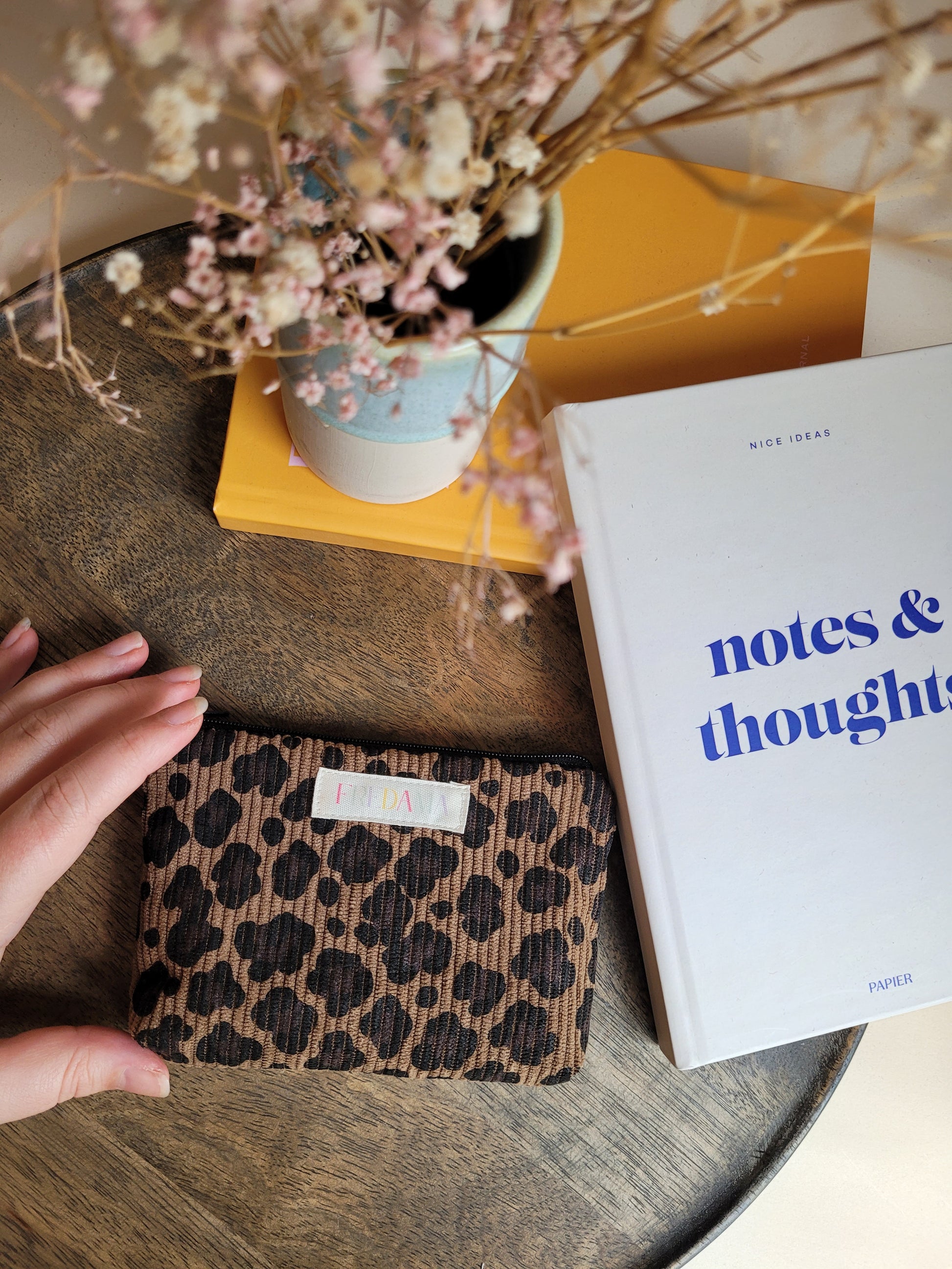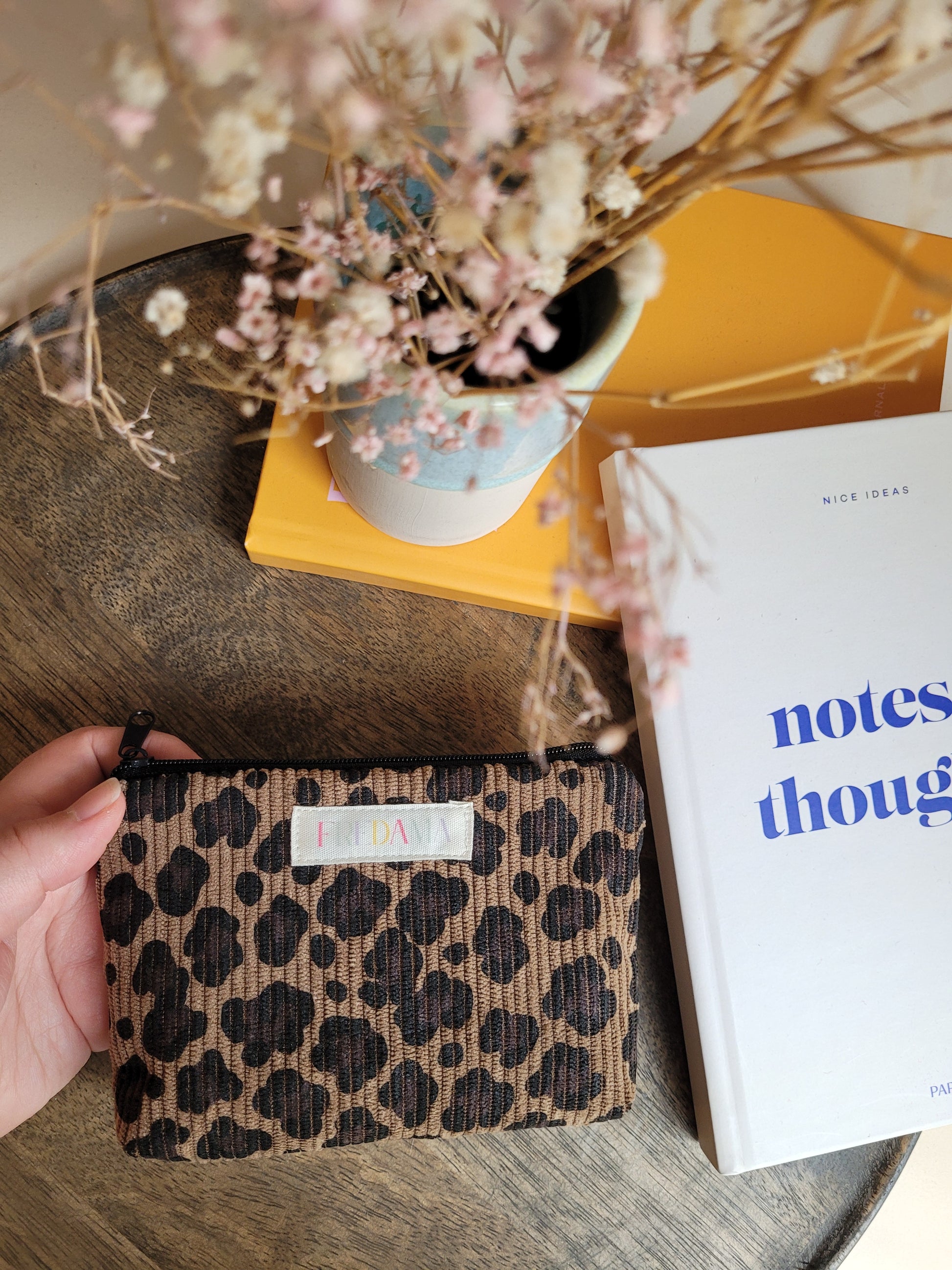 Leo-Print dunkles Kosmetiktäschchen, Cord-Tasche mit Zipper, 14x10x2 cm
