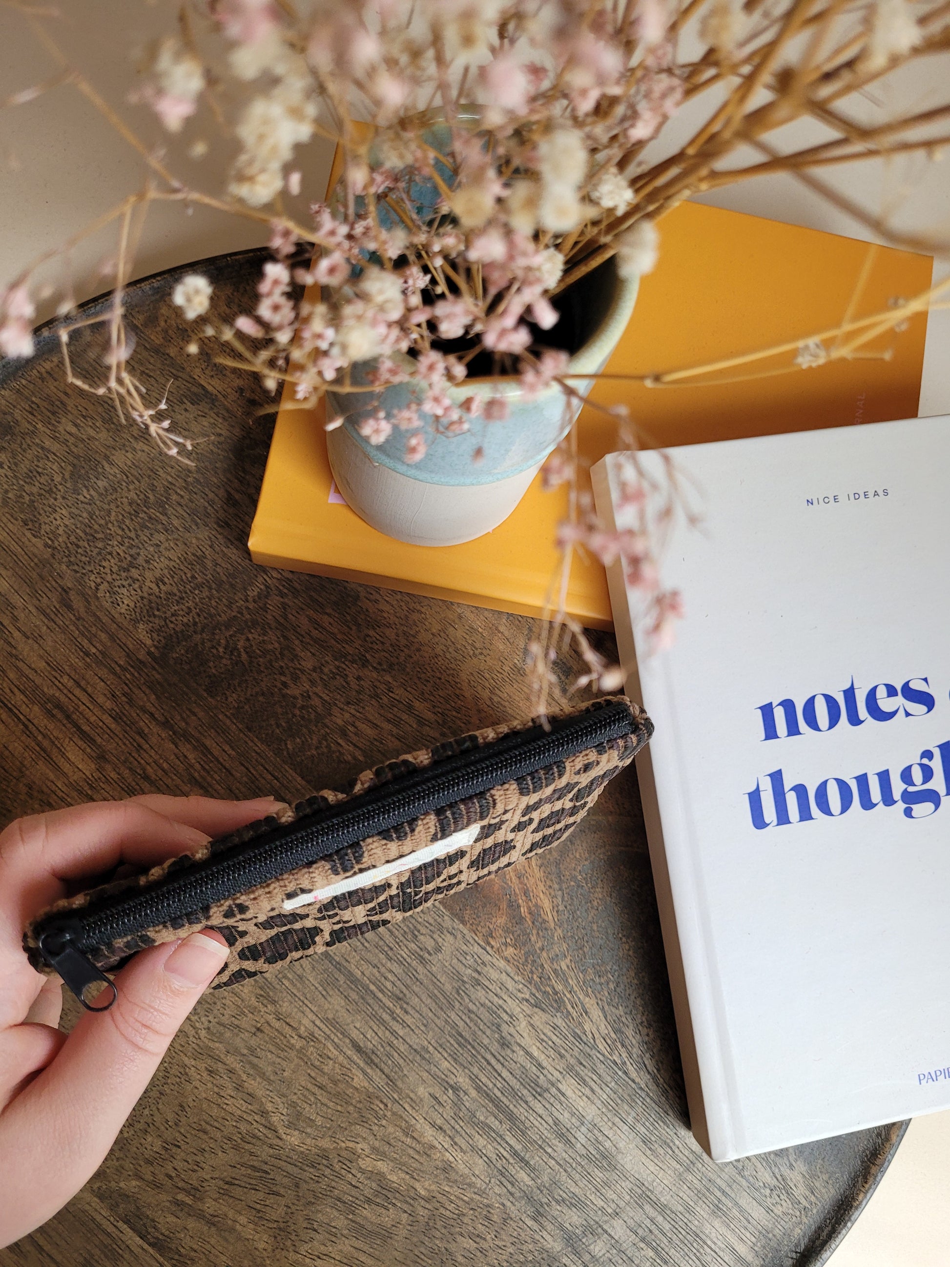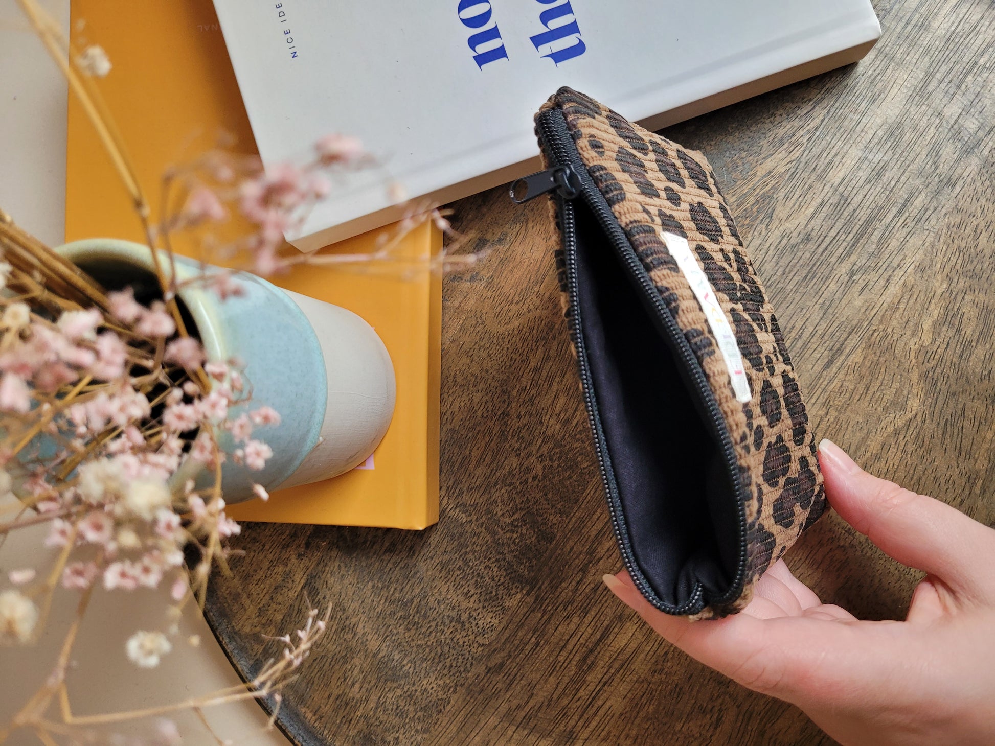 Entdecken Sie unser handgefertigtes Cord-Täschchen mit dezenten dunklen Leo-Print drauf und einem farblich passenden schwarzen Reißverschluss – der perfekte kleine Begleiter für Ihre Kosmetikartikel, Reiseutensilien oder persönlichen Schätze. Gefertigt aus hochwertigem Cordstoff, besticht dieses Täschchen durch seine strapazierfähige Beschaffenheit und die lebhafte gelbe Farbe, die Ihrem Alltag einen frischen Akzent verleiht.