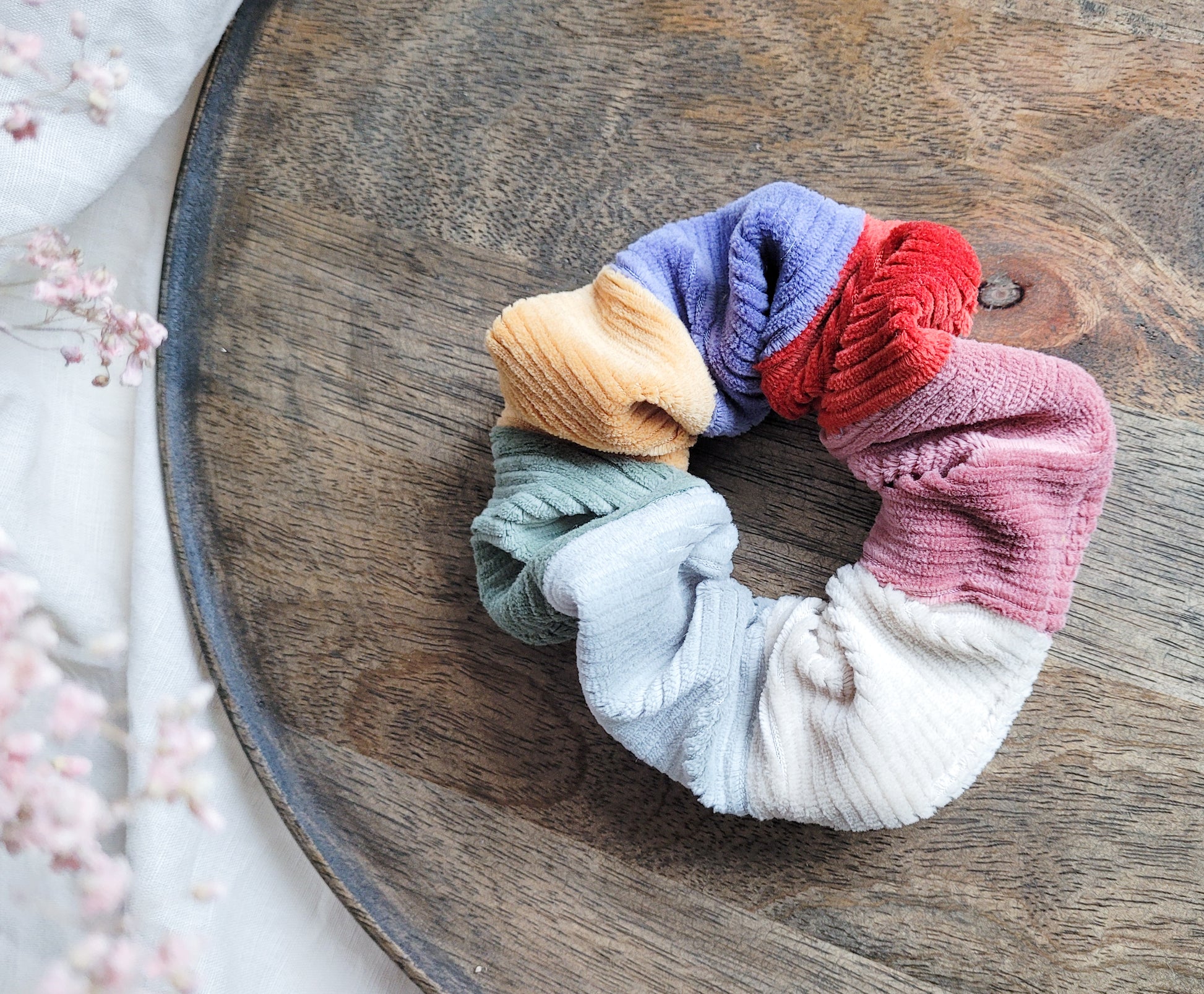 Regenbogen Cord Scrunchie aus 7 Farben - Groß