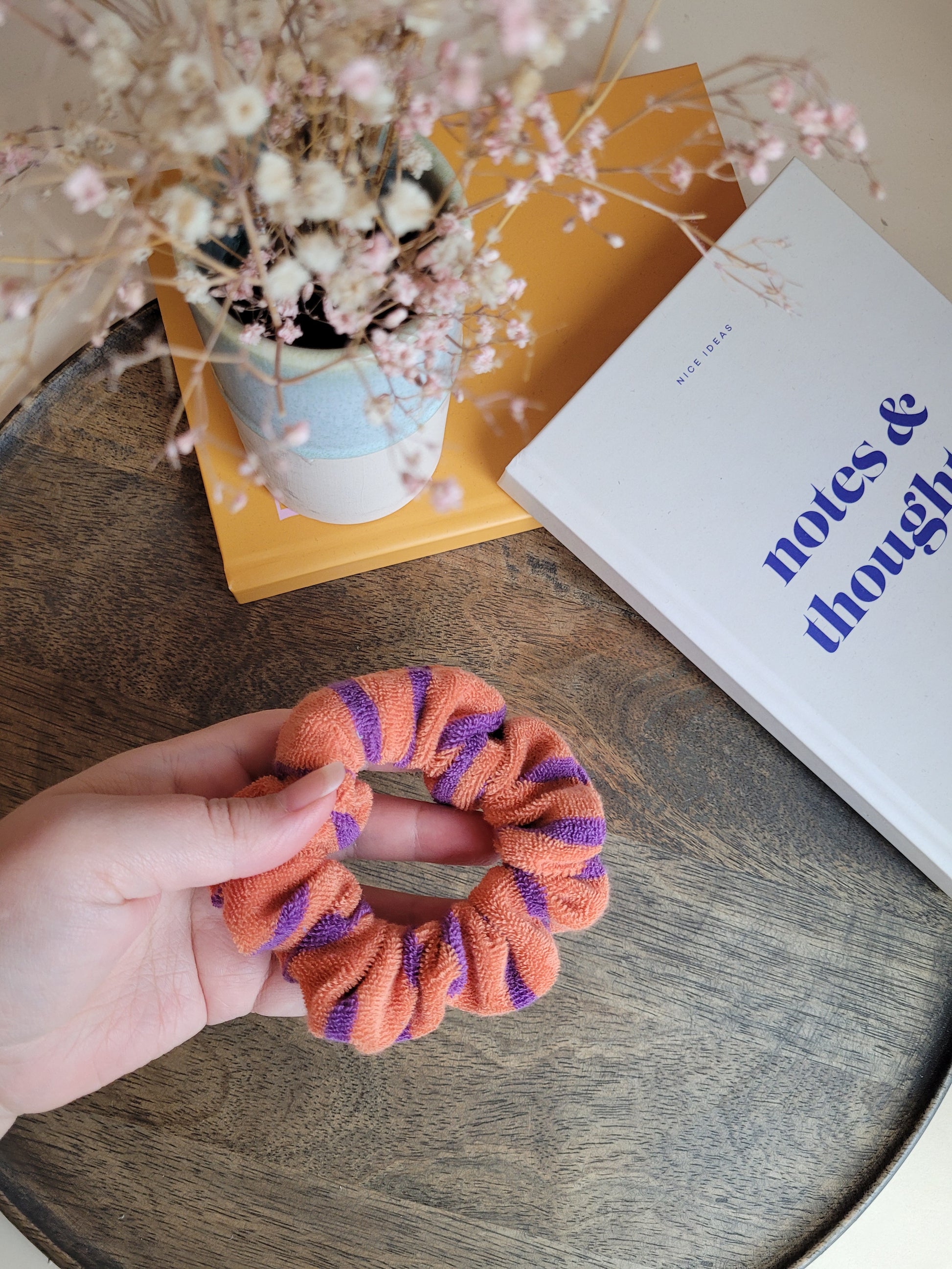 Skinny Frottee Scrunchie, gestreifte Handtuch Haargummis